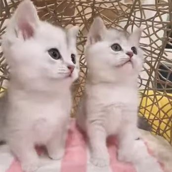 哈囉~頭大臉圓又擁有放大瞳的綠眼睛寶寶來囉 我們是銀漸層英短弟弟,妹妹 右邊是妹妹左邊是弟弟